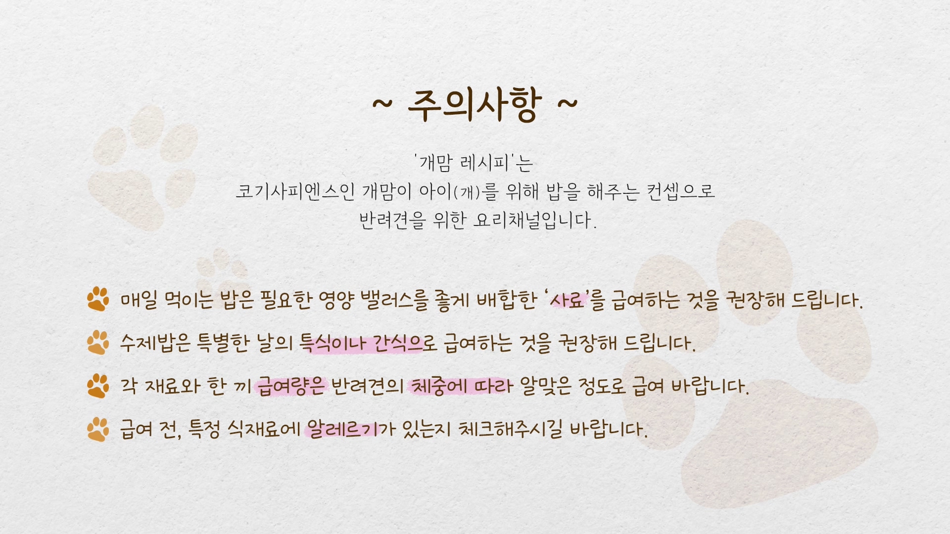※ 자연식 급여 시 알레르기를 유발하는 재료가 있는지 꼭 확인해 주세요!