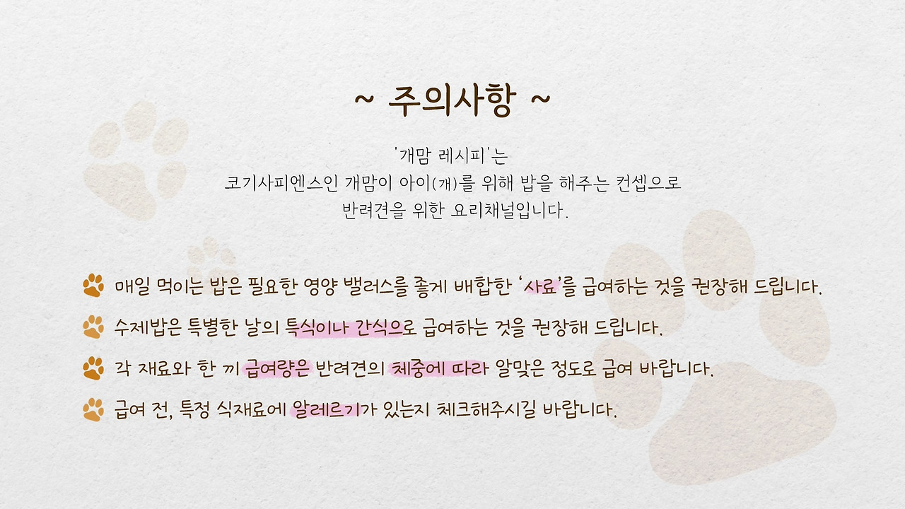 ※ 모든 레시피는 주식이 아닌 특별한 날 간식으로 급여해주세요
