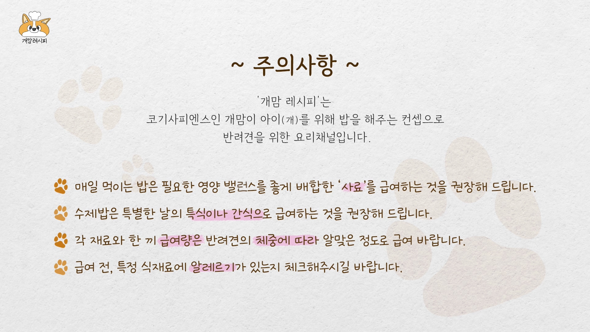 ※ 자연식 급여 시 알레르기를 유발하는 재료가 있는지 꼭 확인해 주세요!
