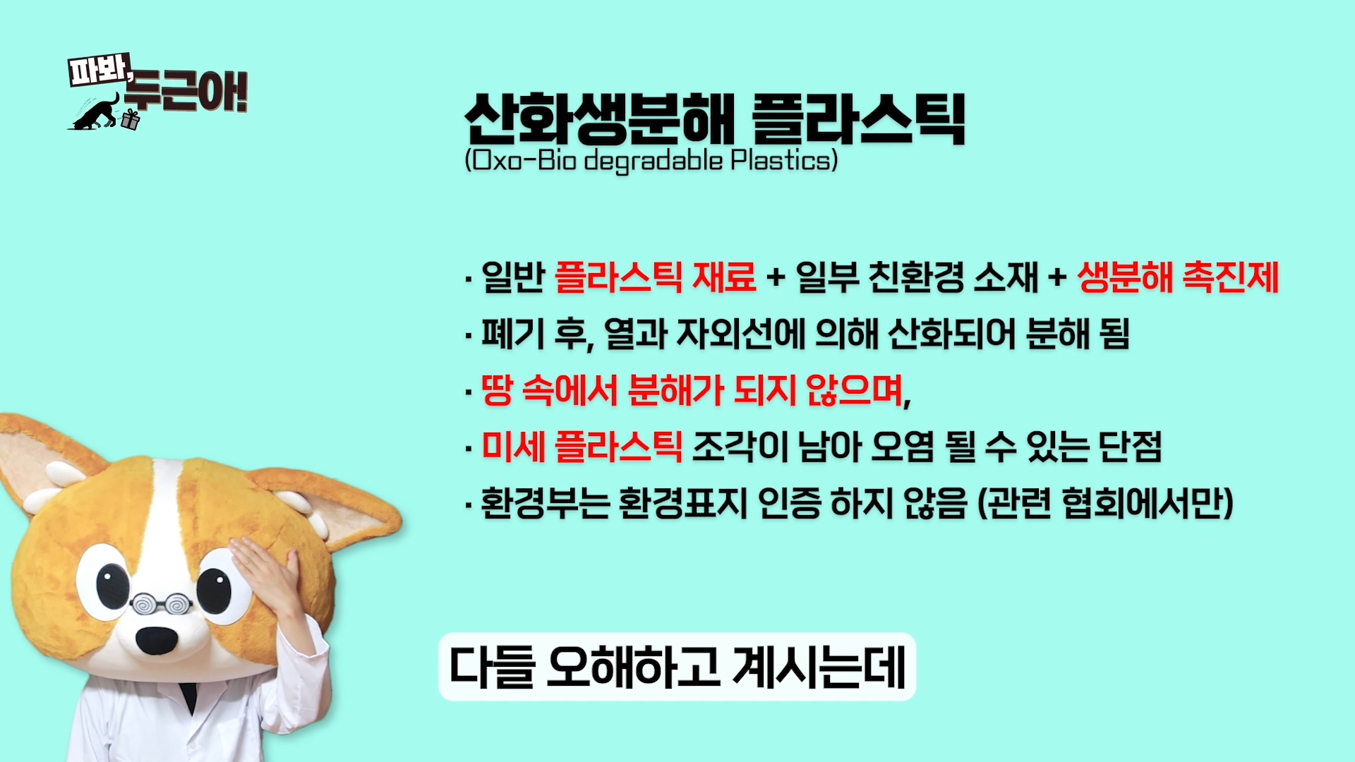 이번 편은 두근이와 개맘의 환경에 대한 고민이 담겼답니다. 막상 자세히 알아보니 분해된다고 해서 무조건 분해되는 게 아니더라고요(?) 이번 편 영상도 함께 보시고, 친환경 봉투에 대한 정보도 알아가셨으면 좋겠습니다.