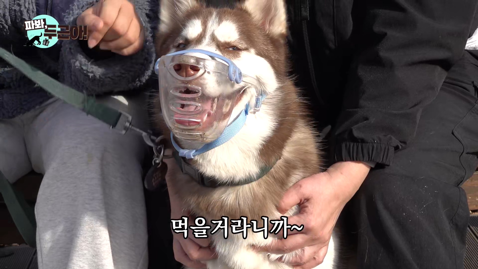 사실 두근이다 중형견이다보니 입마개를 쓴 다음 예상치 못 한 부작용도 겪게 되었는데, 사람들이 입질하는 개로 오해한다는 거였어요. 시베리안 허스키 종의 특징 중 하나가 사람을 정말 좋아한다는 점인데... 모르는 사람들에게 오해 받는 바람에 언니가 마음 상하기도 했어요.
