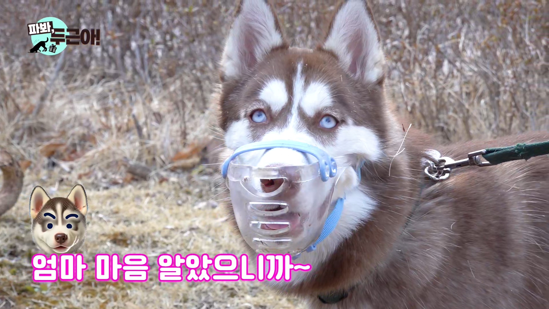 사실 두근이다 중형견이다보니 입마개를 쓴 다음 예상치 못 한 부작용도 겪게 되었는데, 사람들이 입질하는 개로 오해한다는 거였어요. 시베리안 허스키 종의 특징 중 하나가 사람을 정말 좋아한다는 점인데... 모르는 사람들에게 오해 받는 바람에 언니가 마음 상하기도 했어요.