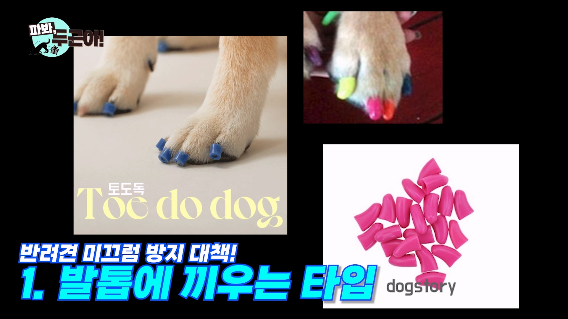 발톱에 끼우는 고무 링 같은게 있던데 그걸로도 효과 보신 분들이 꽤 계시더라고요. 오른쪽에 보이는건 발톱 앞에 끼우는 건데 접착제를 같이 넣어서 고정시켜줄 수 있더라고요. 강아지용 페디큐어? 그런 느낌이에요 ㅎㅎㅎ 색깔도 요란함 ㅋ