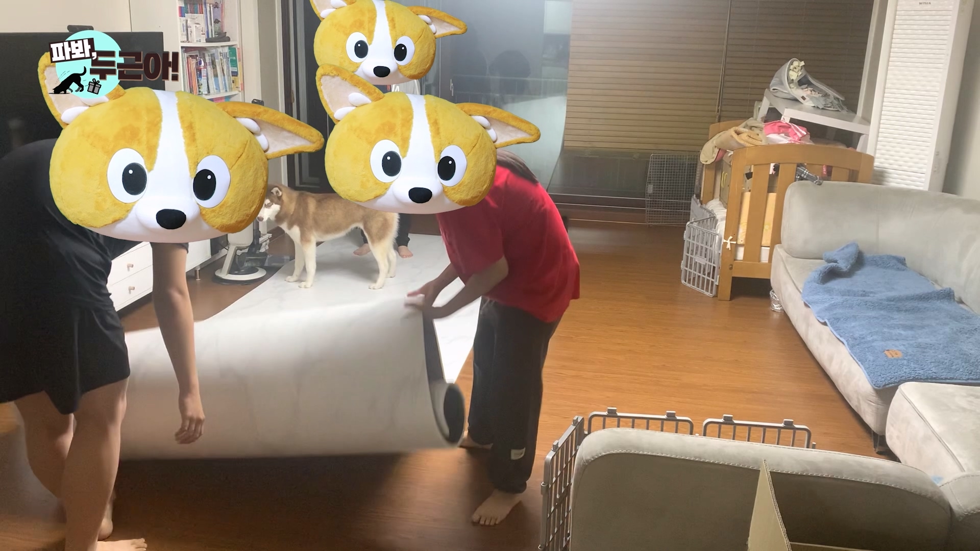 롤매트가 사실 가격대가 있기도 하고, 조각매트 때 처럼 두근이가 좋아할지 어떨지 확신이 서질 않아서 고민을 좀 했는데, 결국 크게 지르게 되었답니다 ㅎㅎ 택배가 4박스 크게 왔는데 든든하네요. 아래는 설치 당시 모습이에요 ㅎ