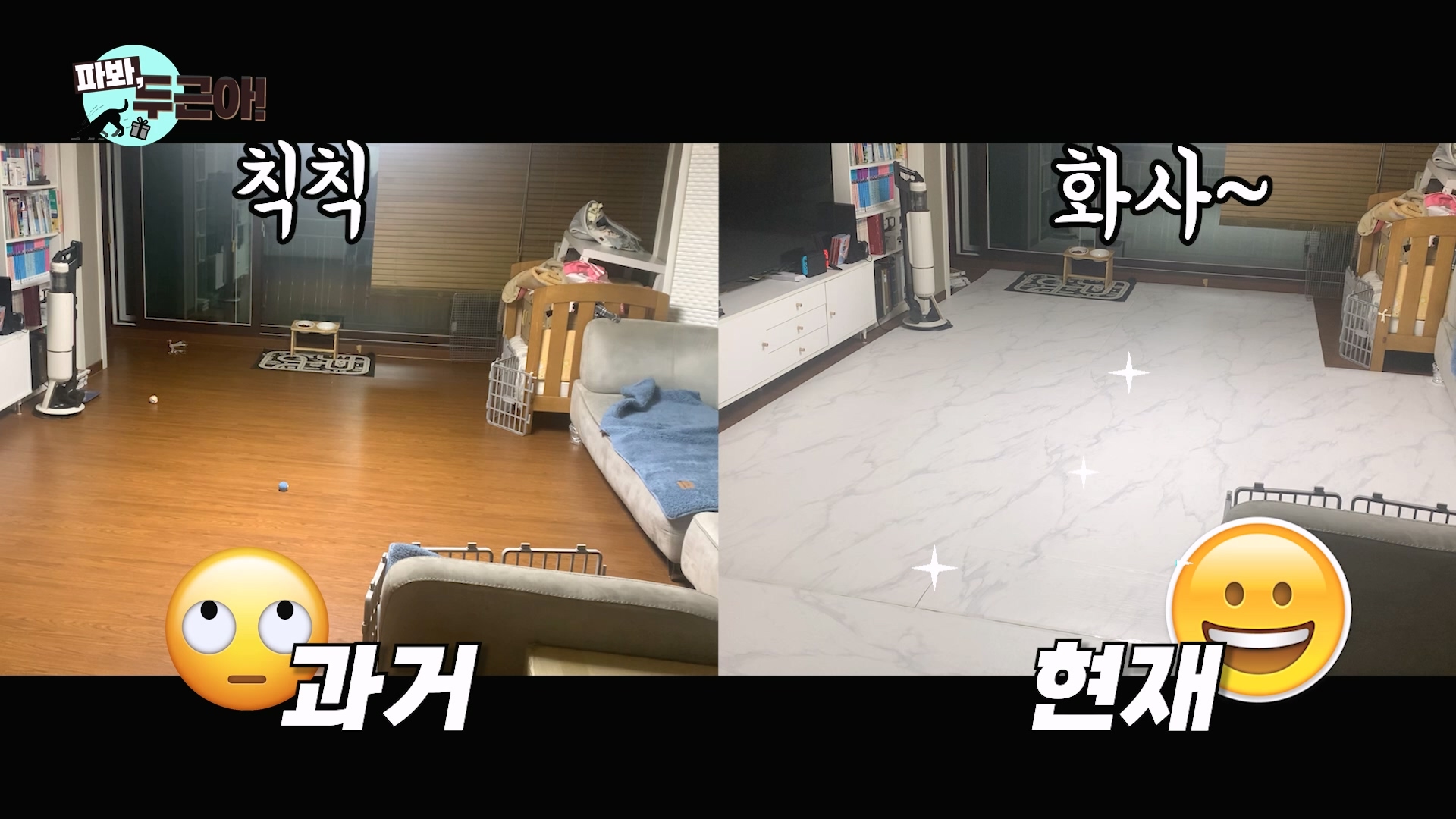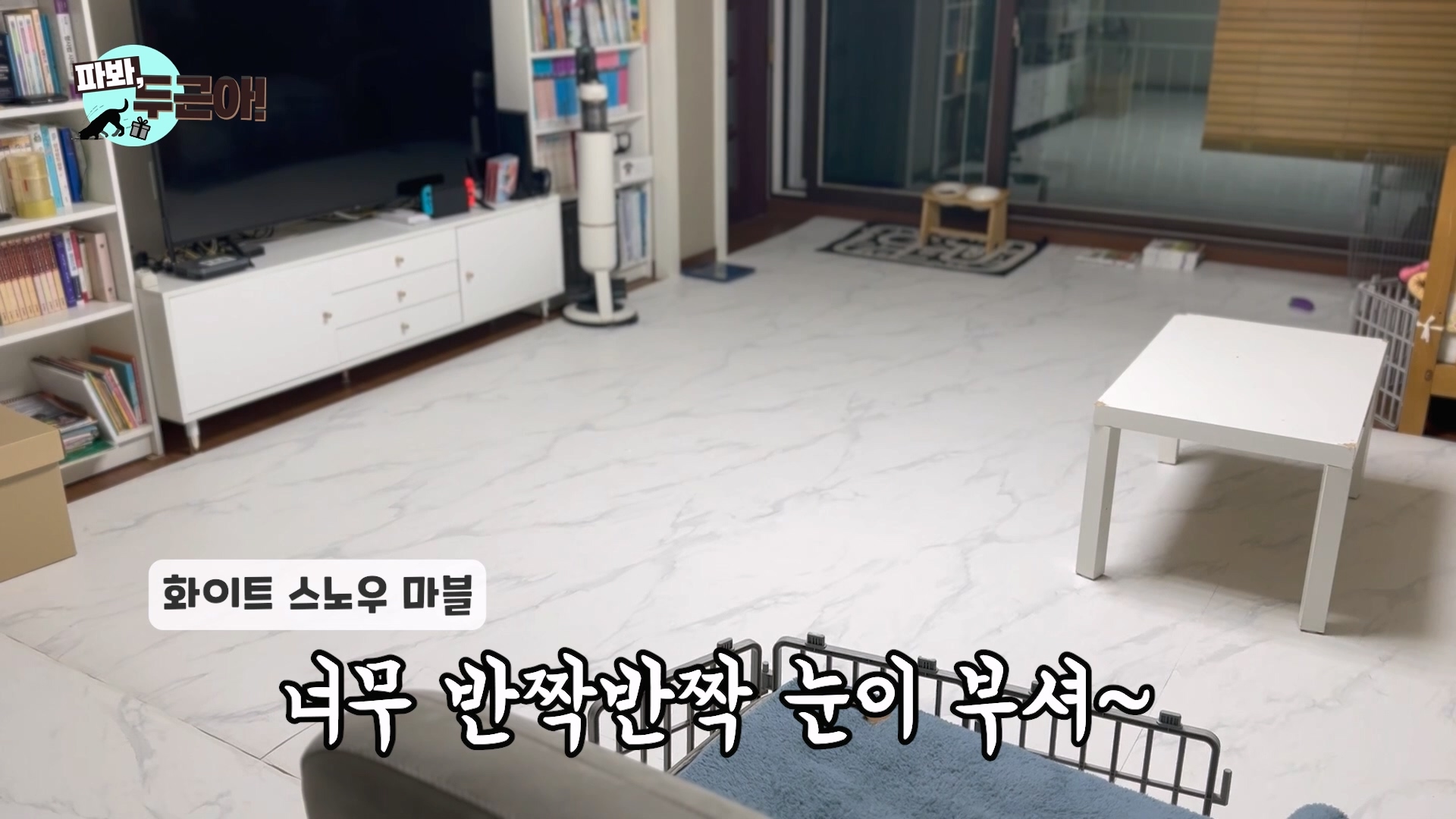 아무튼 미끄럽지 않고 폭신해서 층간소음도 해결되고 성능 자체는 확실히 맘에 드는데, 두근이가 저런 행동을 하게 돼버려서 아쉽기만 해요... 영상 속에서 자세히 보여드려요.