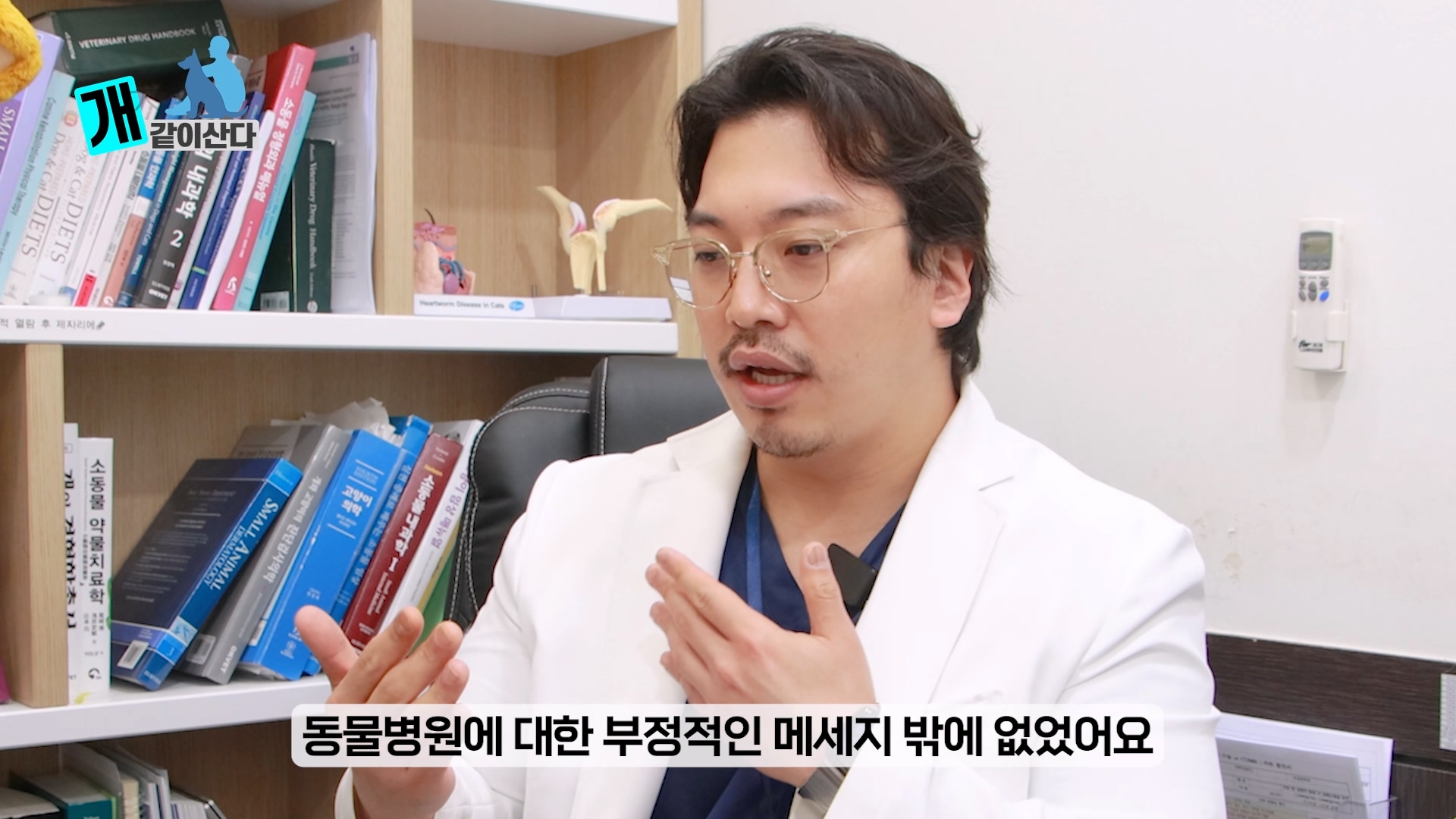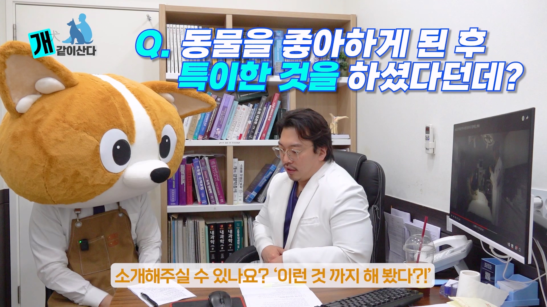 특히, 동물과 가깝게 지내고 수의사 생활을 하시면서 사회적으로 동물병원에 대한 인식이 안 좋다는 걸 느낀 후로, 동물병원과 반려동물에 대한 인식을 개선할 수 있는 드라마를 만들면 어떨까 하고 생각하셨다고 해요. 수의사 일만 하셨던 터라 처음에는 가볍게 생각했던 일이 눈덩이 처럼 커져서 진짜 드라마 스텝들을 모으게 되고 판이 커졌다고 하네요.