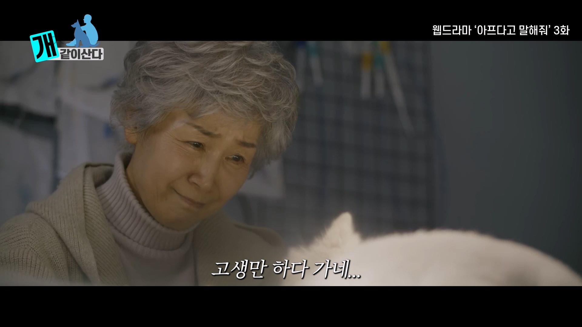또 다른 에피소드로는 안락사 편인 3화를 이야기해주셨는데요, 이 장면은 제가 봐도 울컥하는 장면이었어요. 촬영 당시에 스텝들이 다 울었다고 하는 장면인데, 암에 걸린 할머니의 반려견이 동시에 암에 걸려서 먼저 세상을 떠나는 장면이었어요. 할머니의 마지막 말은 곧 따라간다는 이야기였는데 정말 안타까운 장면이었습니다.