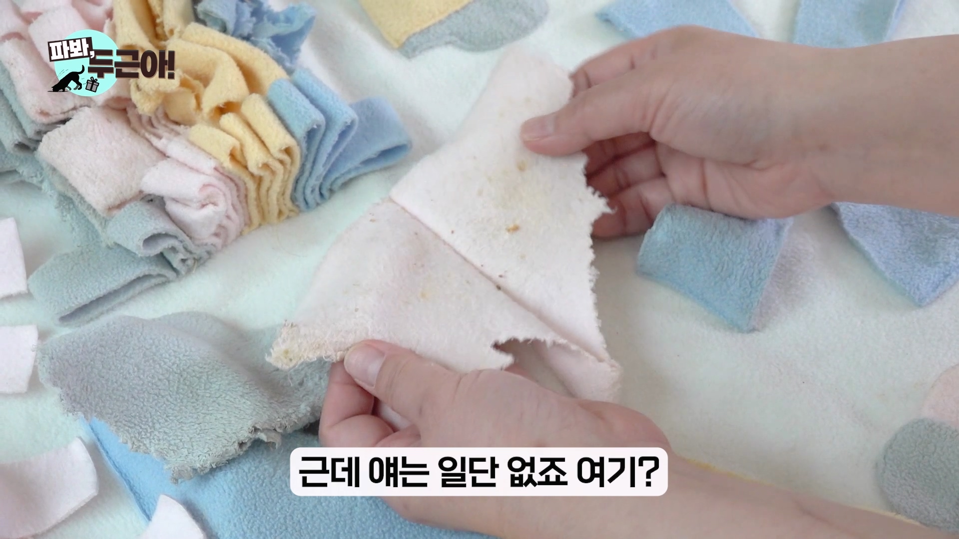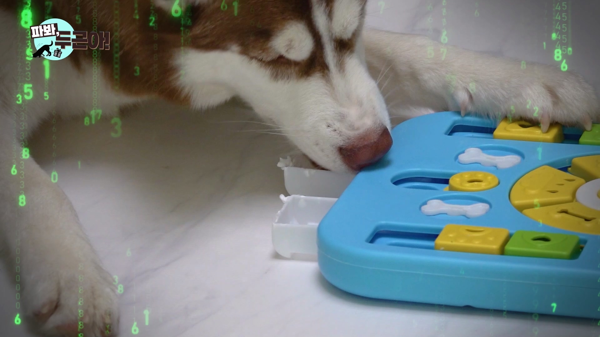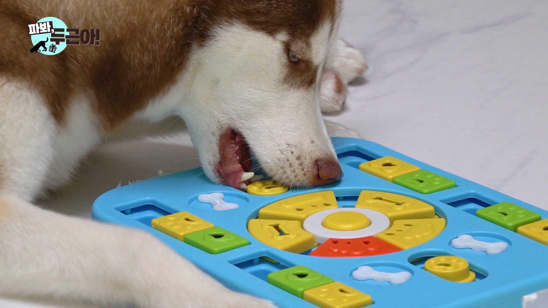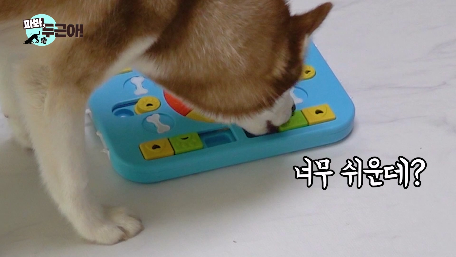 가족들이 외출하면 혼자 집에서 시간을 보내는 두근이(시베리안 허스키, 11개월, 암컷)를 위해서 노즈워크를 준비해준다는 개맘. 그런데 매번 하던 노즈워크는 점점 시간이 단축되고, 특히 천으로 된 매트 형태의 코담요 노즈워크는 천이 찢어지면서 숨길 공간이 없어져버렸다고 해요. 그래서 이번에 그동안 써보지 못했던 형태의 딱딱한 플라스틱으로 된 장난감 모양의 노즈워크를 사보게 되었답니다.