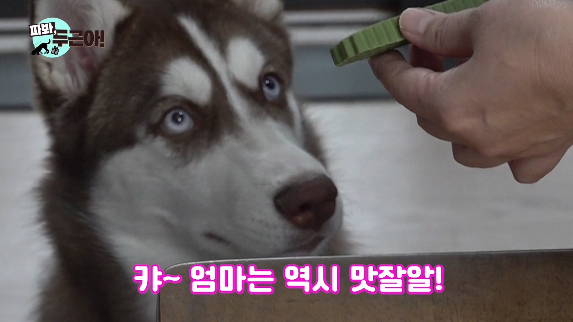 사료를 안 먹을 정도로 간식을 주면 안 되겠지만, 이유 없이 간식을 주지 말고 뭔가 줘도 줄 만한 이유 있는 간식을 찾는 제작진ㅋㅋㅋ 예쁜데 안 줄 수도 없고 주고는 싶은데 그냥 줄 수는 없고... 그래서 타협했다고 할까요?