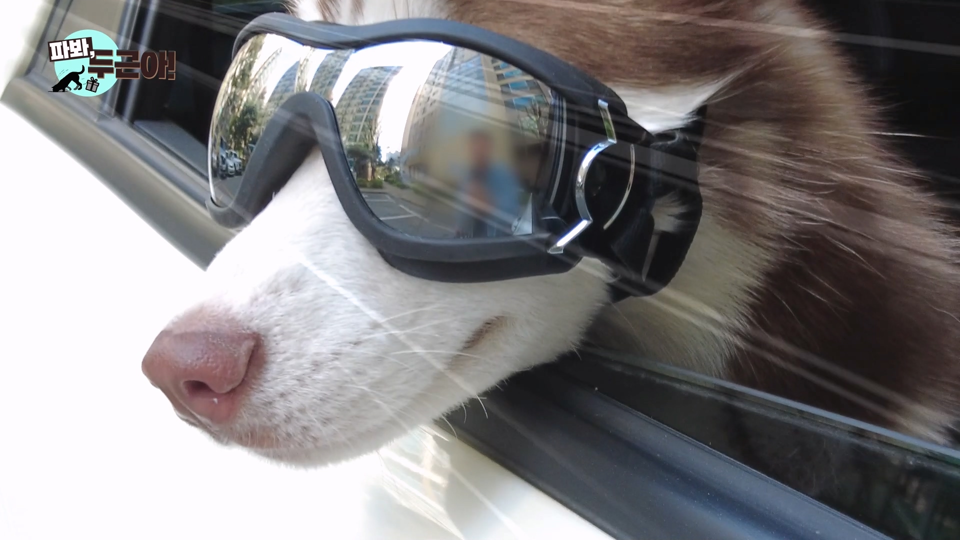 아주 가끔씩 고글을 끼고 다니는 강아지들을 보곤 해요. 처음엔 그냥 멋져보여서 착용하는걸까 싶었는데 이유가 있더라고요. 안충 벌레라는 초파리 유충이 눈에 알을 낳기도 한다고 하고, 자외선과 이물질로 부터 눈을 보호하는 기능을 한다고 해요. 강아지용 선글라스 너무 귀여운데 가격도 그리 부담스럽지 않은 만원대 중반 정도였어요. 그런데... 두근이가 잘 착용해줄까요? 아래 영상에서 확인해보세요~ 😂   ▼영상. 강아지용 눈 보호 고글 편유튜브 '개만족(파봐, 두근아!)'  아래는 주요 장면들이에요. 사실 두근이는 몸에 뭐 닿는걸 별로 안 좋아하는데, 개만족 채널을 운영하면서 여러 전문가 선생님들의 이야기를 듣고 찾아보고 하다 보니까, 처음에 친해지는 시간을 많이 안 가졌던 것 같더라고요. 이번에도 고글 쓰고..