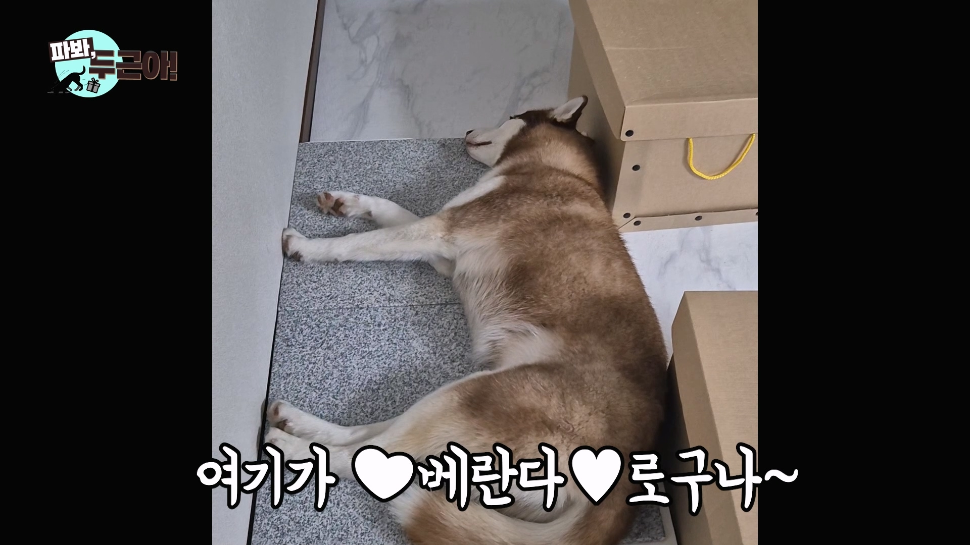 베란다 좋아하는 허스키 두근이에게 시원한~ 공간 선물했어요| 슈퍼펫 도그아이 천연 화강암 쿨매트 (여름준비 영상) | 파봐, 두근아!