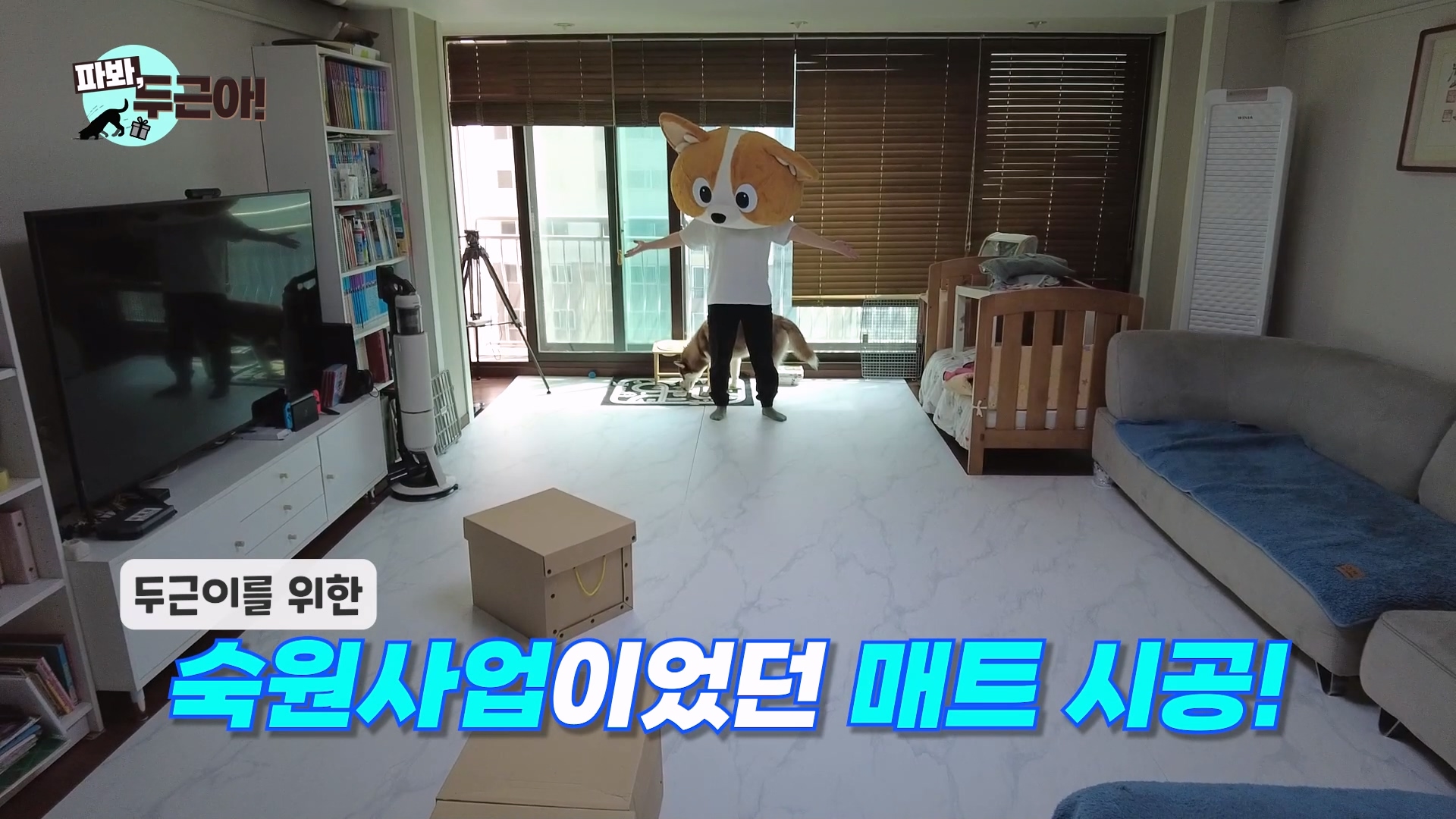 허스키 키우는 집! 미끄러지지 않는 휴팡 롤매트 셀프시공 했어요. 설치 부터 강아지 반응까지 현실 영상 | 파봐, 두근아!
